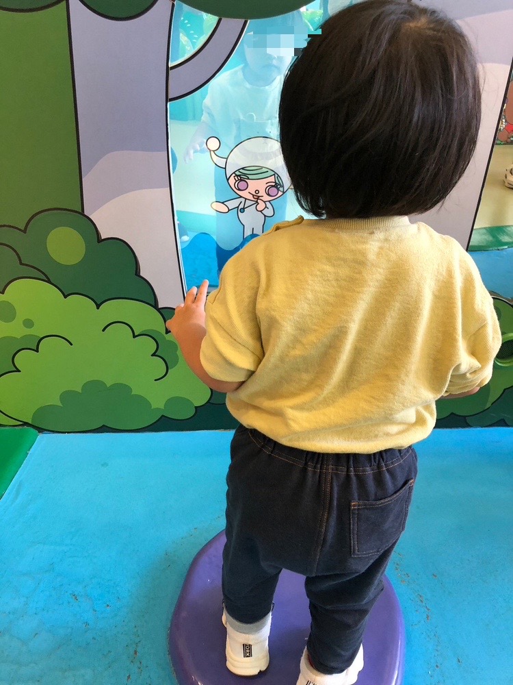 「はっけんジオラマ②」に写っているこの遊びなのですが、石に見立てたマットの上に乗ると鏡から絵が現れる仕組みになっています🪞